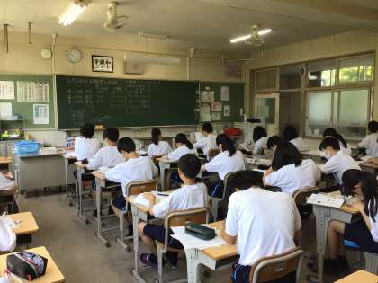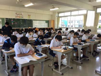 写真は1年生です。初めての定期テスト。時間いっぱい取り組んで、見直しまでしっかり行うようにしてくださいね。