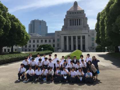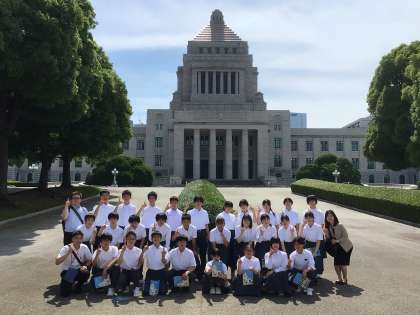 国会見学が終わったところで記念撮影をしました。写真は1、2、3組です。
