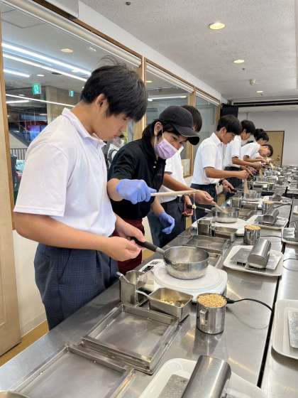 いろいろなクラスの学級別活動の様子を少し紹介します。詳しくは改めてアップします。上から2組の雷おこし作り、3組の風鈴づくり、4組の水上バスです。