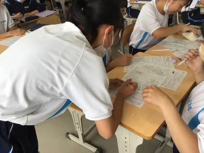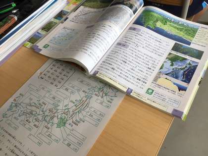 一番上の写真は1年5組の英語です。英語のテストに取り組んでいました。2,3枚目の写真は2年7組の社会科です。地理の勉強を頑張っていました。