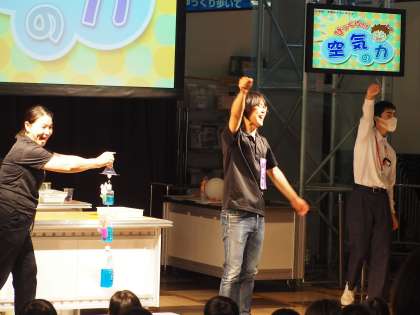 写真は豊田市科学館での様子です。ショーに出演してがんばりました。観客の皆さんに喜んでいただけましたか?
