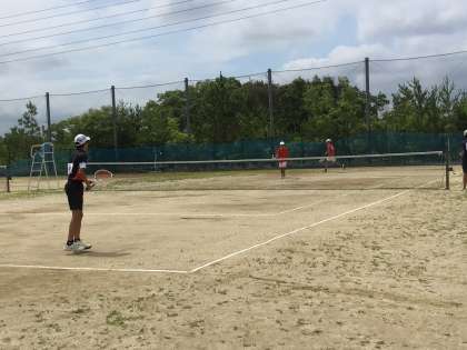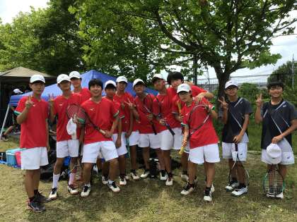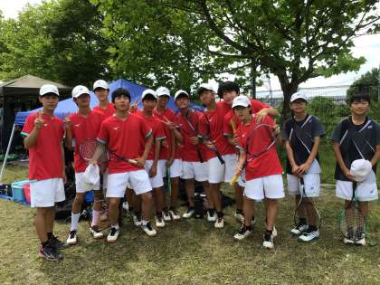 今日は市内のいろいろな会場で運動部の市内大会が行われています。写真は三好丘中学校のテニス男子の様子です。団体戦が終わり、個人戦が行われていました。