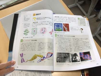 3年5組と4組の理科の様子です。3年生は今、遺伝について学習しています。