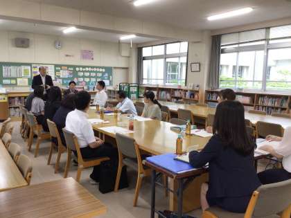 本日15時より本校図書室にて「第1回末野原中学校区コミュニティスクール連絡会議」を開催しました。市議会議員、末野原コミュニティ会長、末野原交流館長、PTA会長、学区の小学校長、地域コーディネーター、市教委関係者に出席していただき、各校の地域連携の現状、小中連携に関する活動、地域学校共働本部の取組、部活動の地域移行等について様々な角度から意見交換・情報交換を行いました。