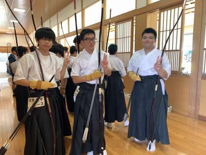 市内大会が先週、先々週に続いて豊田、みよしの各会場で行われました。今日は、本校からは、豊田市総合運動公園弓道場で弓道の大会に、三好運動公園で剣道の大会に、同じく三好でのテニス男子個人戦に各部の生徒が臨みました。明日の個人戦に出場する生徒もいます。みなさん、頑張ってください!