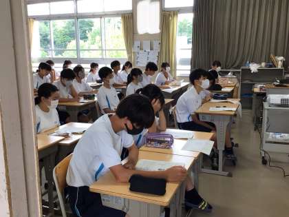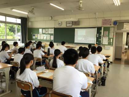2年生の様子です。2年生も課題への取組について、また、部活動への参加の仕方や生活などについて各担当の先生や主任からの話をしっかり聞いていました。