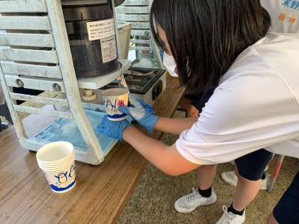 夕方になってもまだまだ暑いです。かき氷の出店の前には長い列ができていました。大忙しです。お疲れさま!