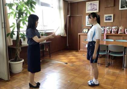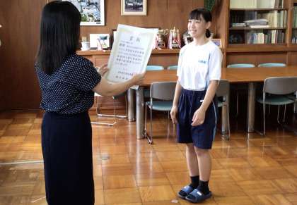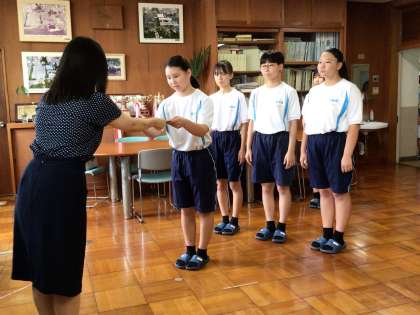 1時間目はオンライン全校集会を行いました。まずは表彰伝達です。夏休み中に行われた各種大会の表彰を行いました。