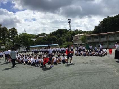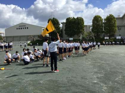 2時間目は今年度2回目の避難訓練を行いました。4月に行った第1回避難訓練では地震に備えた訓練を、今回は調理室から火災が発生したという想定の訓練を実施しました。生徒たちは放送がかかると担任の先生の指示でハンカチを口に当て、素早く運動場に避難することができました。