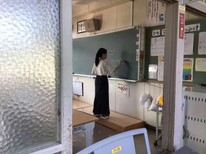 今朝も生徒たちが登校してくる前の教室に、さまざまな準備をしている先生たちの姿がありました。黒板に向かっている先生、授業で使う資料をタブレットで準備している先生。窓を開けて生徒を迎える用意をしている先生。朝一番の教室は窓が閉め切ってあり、熱気がこもって暑いです。今日も1日が始まります。
