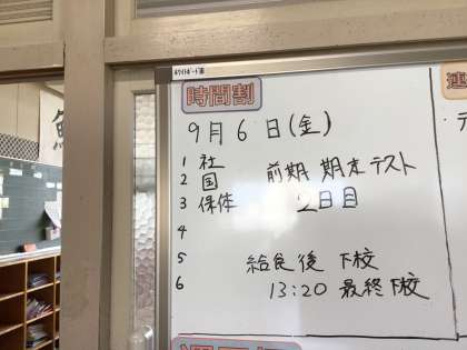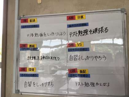 おはようございます。日中はまだまだ暑いですね。今日はテスト2日目です。1、3枚目の写真は3年生、2枚目の写真は2年生です。それぞれの学年が今の目標を意識してテストに臨むことでしょう。