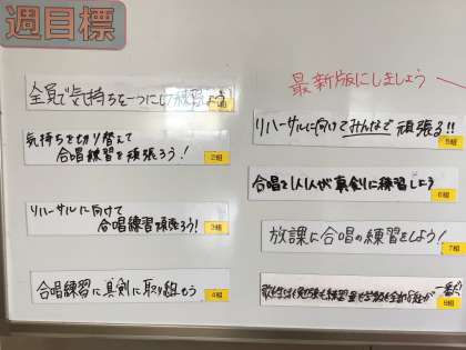 楽譜に書かれたさまざまな記号、歌詞に込められた意味、思い。そんなことを掘り下げながら各学級で工夫して合唱に取り組んでいます。写真は5時間目の3年3組です。「信じることでよみがえる命」「そんなあなたを私は信じる」短い言葉に込められた意味を考えます。9月27日(金)はぜひ体育館で生徒たちの歌を聴いてください。