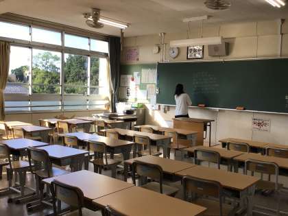 おはようございます。今日も暑くなりそうです。生徒が登校してくる前の教室をひと回り。鳥の鳴き声、コツコツと響くチョークの音、先生が廊下を歩く微かな足音、窓を開ける音などが聞こえてきます。いつもの朝のひと時です。