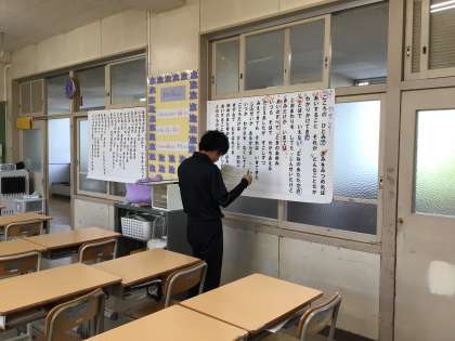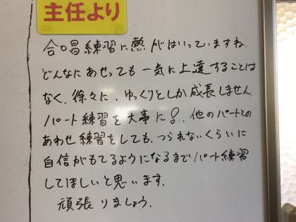 生徒がいない教室で楽譜を手にじっと考えている先生の背中、時折文字を書く手を止めてじっと黒板に向かっている先生の背中。そんな朝の光景をタブレットで撮りました。今日も良い1日でありますように。