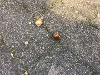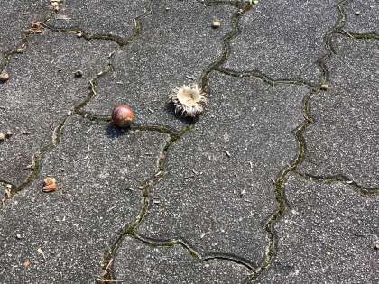 中庭の木からどんぐりが落ち始めました。暑くてもやっぱり秋です。