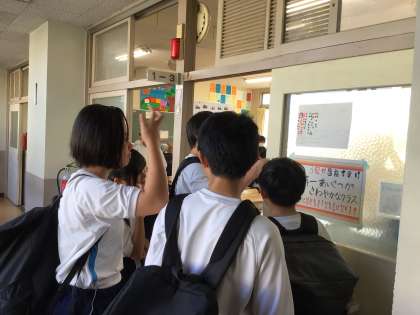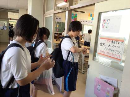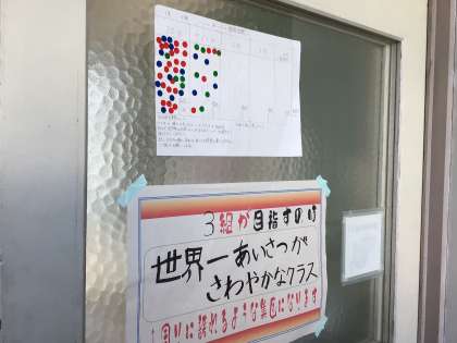 昨日から生活安全委員会が挨拶運動を行っています。爽やかな挨拶ができるとシールがもらえるようです。教室入り口にある紙に生徒がシールを貼っていました。写真は1年3組です。