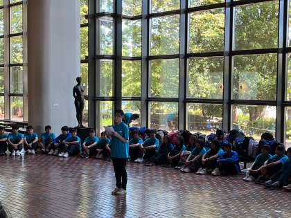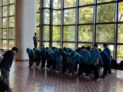 昨日のイギリス団に続いて、今日の昼、豊田市中学生海外派遣団としてアメリカに行っていた生徒たちが帰着しました。市民文化会館で行われた帰着式の様子です。本校からは3年生の浦地くんが参加しました。おかえりなさい!