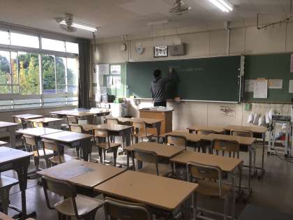 おはようございます。生徒登校前の朝の風景です。静かな校舎に黒板を書くチョークの音や窓を開ける音が響いています。
