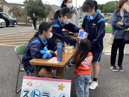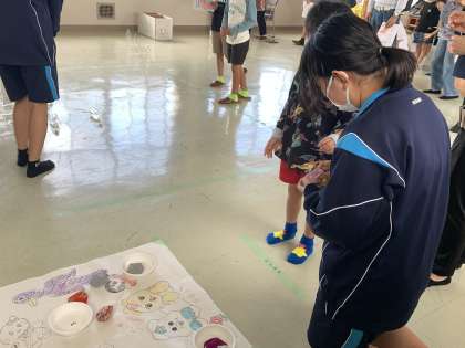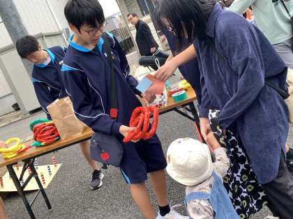 自治区のお祭りで中学生が大活躍しています。小さい子の目線になってかがんで優しく話しかけたり、上手にフォローしたりする姿が素晴らしいです。地域の方たちも係の方も、お祭りに参加している家族連れの方たちも、もちろん小さい子も、みんな笑顔です。