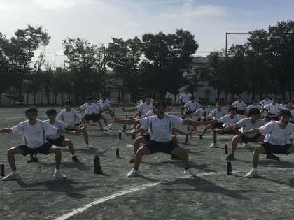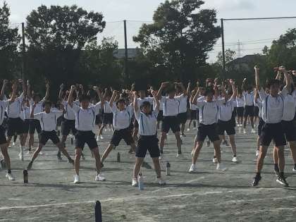 5、6時間目は3年生が体育祭練習を行っています。末中ソーランは伝統的に3年生が取り組んでいる演技です。生徒も先生も熱い時間を過ごしています。何度も何度もより美しく感動的な演技になるように練習を繰り返しています。