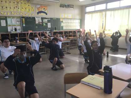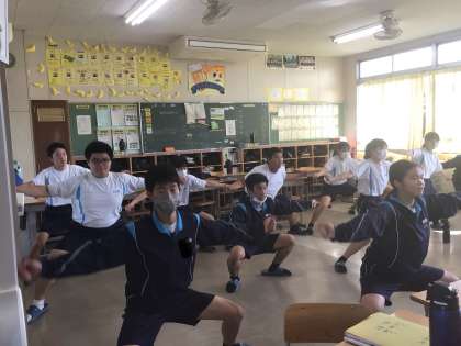 3年生教室にソーランの音楽がかかっています。各教室では生徒たちが自分たちで音楽をかけて、自主的に練習を行っています。最後の体育祭に向けて気持ちが入っている40回生です。