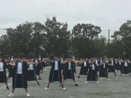 3年生の学年演技「真剣証舞」です。今日まで練習を積み重ねてきました。