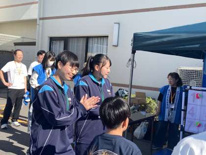ボランティアで活躍する中学生の様子です。地域のイベントや夏祭り、秋祭りに続いて、ふれあい祭りでも末中生の姿が光りました。