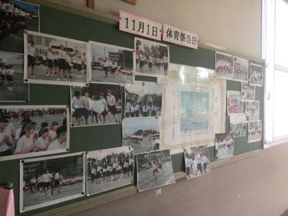 体育祭が終わり、連休が明けた火曜日の学校の様子です。掲示物がさっそく色々とできていました。生徒の皆さん、廊下を歩くときにぜひ先生たちが作ってくれた掲示物や写真を見てくださいね。