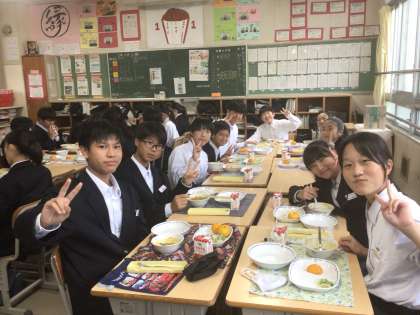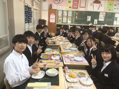 そして、今日のみかん。昔は給食のみかんといえば冷凍みかん。真夏や真冬に冷凍みかんが給食に出たことを思い出しました。それはそれで美味しかったのですが、真冬の冷凍みかんは冷たすぎて味が分からず、やっぱり冷凍していないみかんの方がおいしいです。写真は1年1組の給食の様子です。