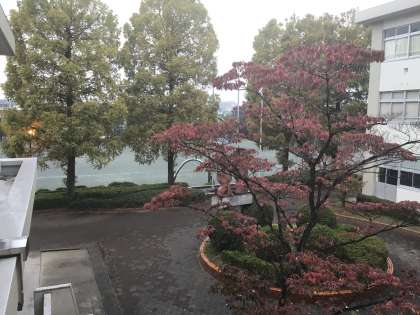 今朝の一枚は生徒昇降口前の紅葉です。ハナミズキの紅葉ももうすぐ終わりです。