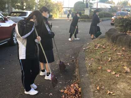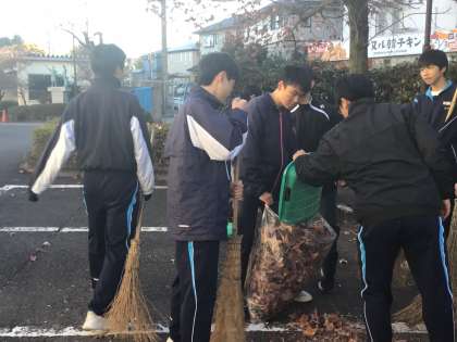 今朝の学校の様子です。たくさんの生徒が落ち葉掃きをボランティアで行ってくれています。かじかんだ手で一生懸命に落ち葉を集めています。空気は冷たいですが爽やかな生徒の姿や元気の良い挨拶に気持ちはポカポカ、温かくなりました。ありがとう!