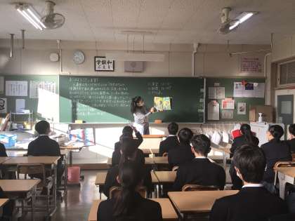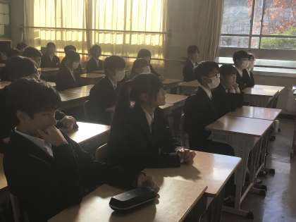 今朝のスタートは読み聞かせボランティアさんたちによる絵本の読み聞かせでした。生徒たちのために選んでくださった本を各学級で読んでくださいました。同じ本でも小学生と中学生、大人と子どもでは感じ方が異なります。生徒たちの心の琴線に触れたのはどんな場面だったでしょうか。お話にじっと耳を傾ける生徒たちの表情が印象に残りました。