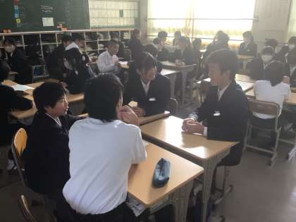 水曜日の朝の活動であるSST(ソーシャルスキルトレーニング)の様子です。友達の話を笑顔で、頷きながら、目を見て聞きます。