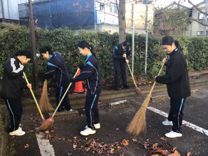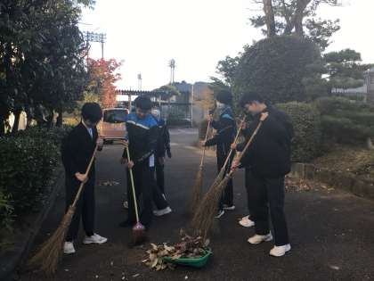 今朝の3年生ボランティア活動の様子です。寒い中ありがとう!先週あたりから吐く息も白くなりました。正門の四季桜がきれいに咲いています。