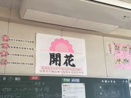 「開花」「すえ広がり」寒さに負けず、自分に負けず、時間を大切にして一日一日を過ごしましょう。