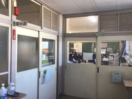 今日は3年生の第3回学習診断テストです。国数社理英の5教科のテストを受けます。公立高校と同じ各教科22点満点のマークシートで、英語はリスニングもあります。本番の入試と同じような緊張感が3年生教室から伝わってきます。