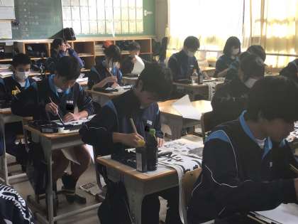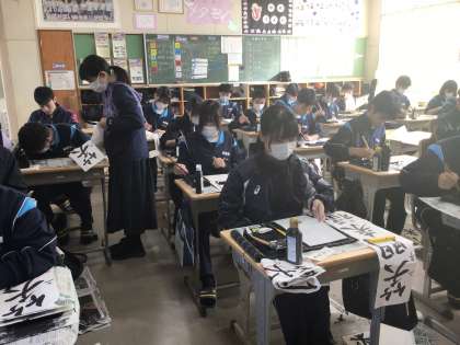2年3組の様子です。真剣に書き初め練習に取り組んでいました。年明けの登校日は1月7日(火)です。この日に書き初め大会を行います。良い作品が書けるといいですね。