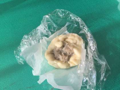 2年5組の生徒が調理実習で作った肉まんを校長室に届けてくれました。遠慮がちに「しゅうまいです」と言っていましたが、肉まんです。中のひき肉が顔を出していますが、味は大変よろしい💮
