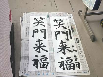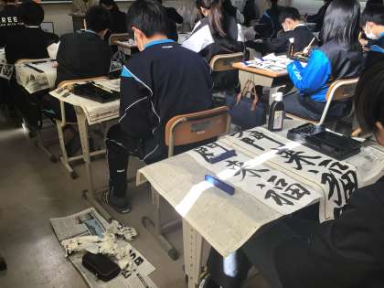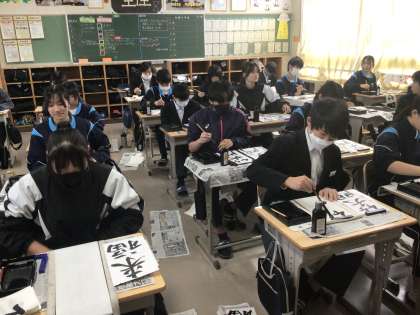 2、3時間目は書き初めです。写真は2年生の様子です。
