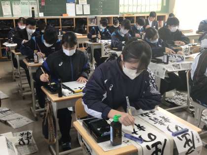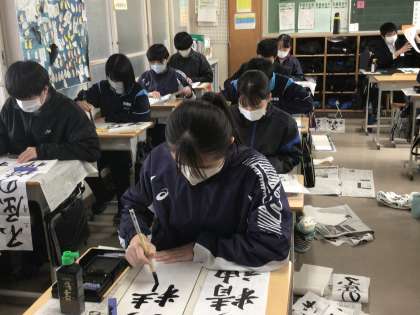 2、3時間目は書き初めです。写真は3年生の様子です。