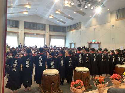 式典のオープニングには和太鼓部の生徒たちの演奏があり、参加した二十歳の皆さんは後輩たちの演奏に惹きこまれたような様子でじっと耳を傾けていました。地域の皆さんからは、素晴らしい演奏を絶賛する声をたくさんいただきました。太鼓部のみなさん、ありがとう。大役お疲れさまでした。