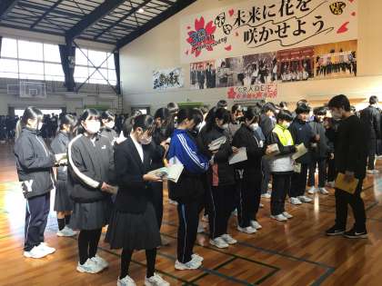 明日からの自然教室に向けて、2年生は体調を整えるために、今日は給食後に帰りの会を行い、早めに下校します。現在、2年生のインフルエンザ罹患者はいません。みんな元気に参加し、元気に帰ってこられるよう祈っています。出かける先は乗鞍高原の山の中です。雪も深いですし、発熱等の症状があってもすぐに病院にかかれる環境ではありませんので、当日、体調に不安がある場合は無理をせず、ご家庭で様子を見ていただくようお願いします。
