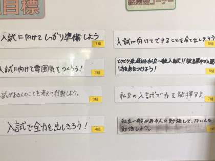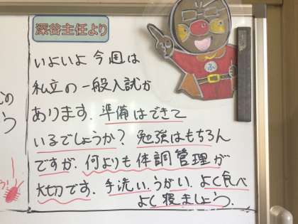 ここまできたらあとは体調を崩さないことが最も大切。3年生の皆さん、時間を上手に使って当日最高の力が出せるようにしてください。
