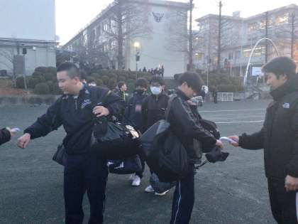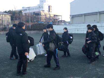 今年は自然教室初日からスキー実習を始める関係で、昨年より登校時間を早めました。お子さんを送ってくださった保護者の皆様、今朝はありがとうございました。他学年の先生たちも誘導などの応援に駆けつけてくれました。いよいよバスに乗り込みます。今朝、ご家庭で検温と健康観察をしていただいたと思いますが、バスに乗る前にも確認の検温を行いました。元気に活動して元気に帰ってきます。
