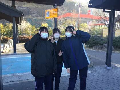 最初の休憩です。美濃加茂サービスエリア。全然寒くないです。生徒たちはとても元気です。テンション高めです。