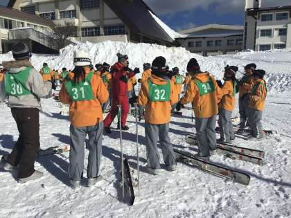 実習が始まりました。経験別の班に分かれて指導を受けます。準備運動もしっかりと。