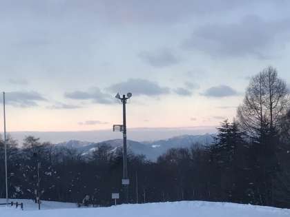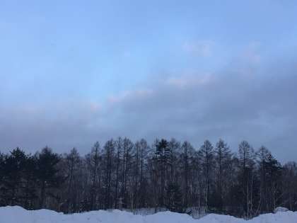 おはようございます。マイナス6度の朝です。空がだんだん晴れてきました。西の空に見える山々が次第に明るくなってくる様子が綺麗でした。自然教室2日目。今日もよろしくお願いします。