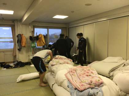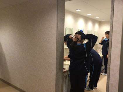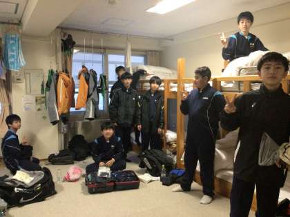 おはよう!昨日はよく眠れたかな?夜中に体調不良を訴える生徒もなく、2日目の朝を迎えました。6時半に起床した生徒たちの様子です。少し眠そうです。