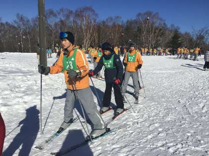 今日はどのくらい上達が見られるでしょうか。楽しみです。スキー板の持ち方、歩き方、ハの字の作り方、生徒たちはいろんなことに慣れてきたように感じます。初心者の子たちも午後はリフトに乗れるといいですね。最高の眺めが楽しめると思います。
