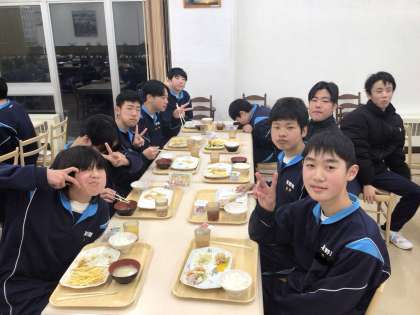 今日は1日スキー実習を頑張ったので、お腹が空いているでしょう。しっかりと食べてくださいね。